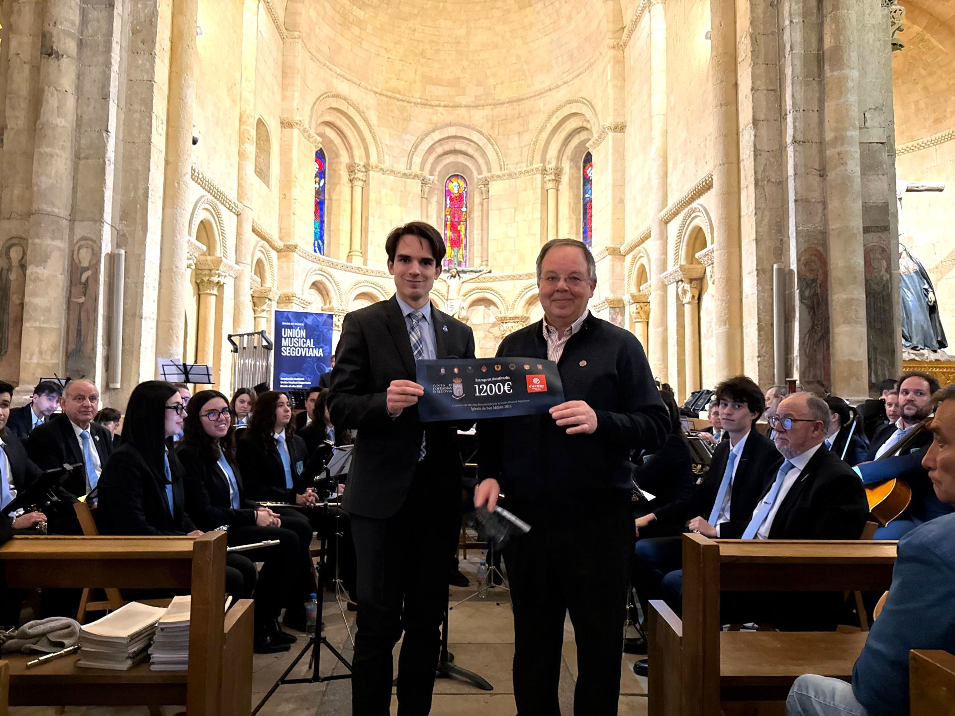 La Junta de Cofradías, Hermandades y Feligresías de la Semana Santa de Segovia ha entregado un cheque a Cáritas Diocesana por valor de 1.200 euros durante el Concierto de marchas procesionales, celebrado en la iglesia de San Millán, con un carácter benéfico y solidario en su planteamiento.